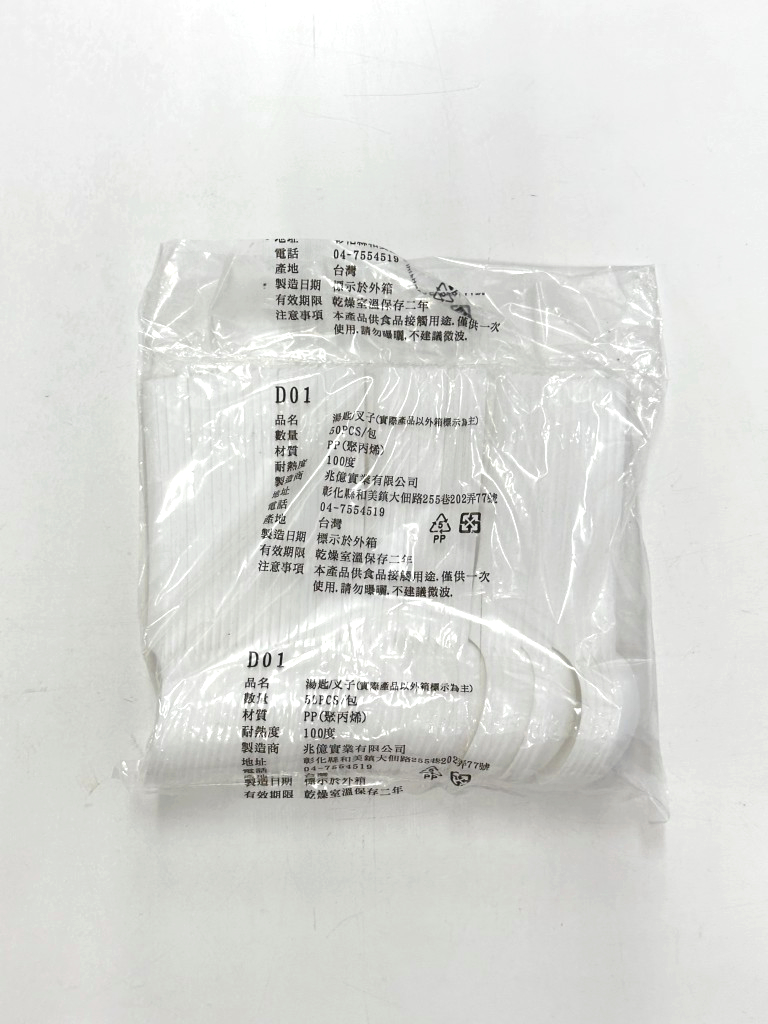 西餐湯匙塑膠(白) 50支*80包/箱